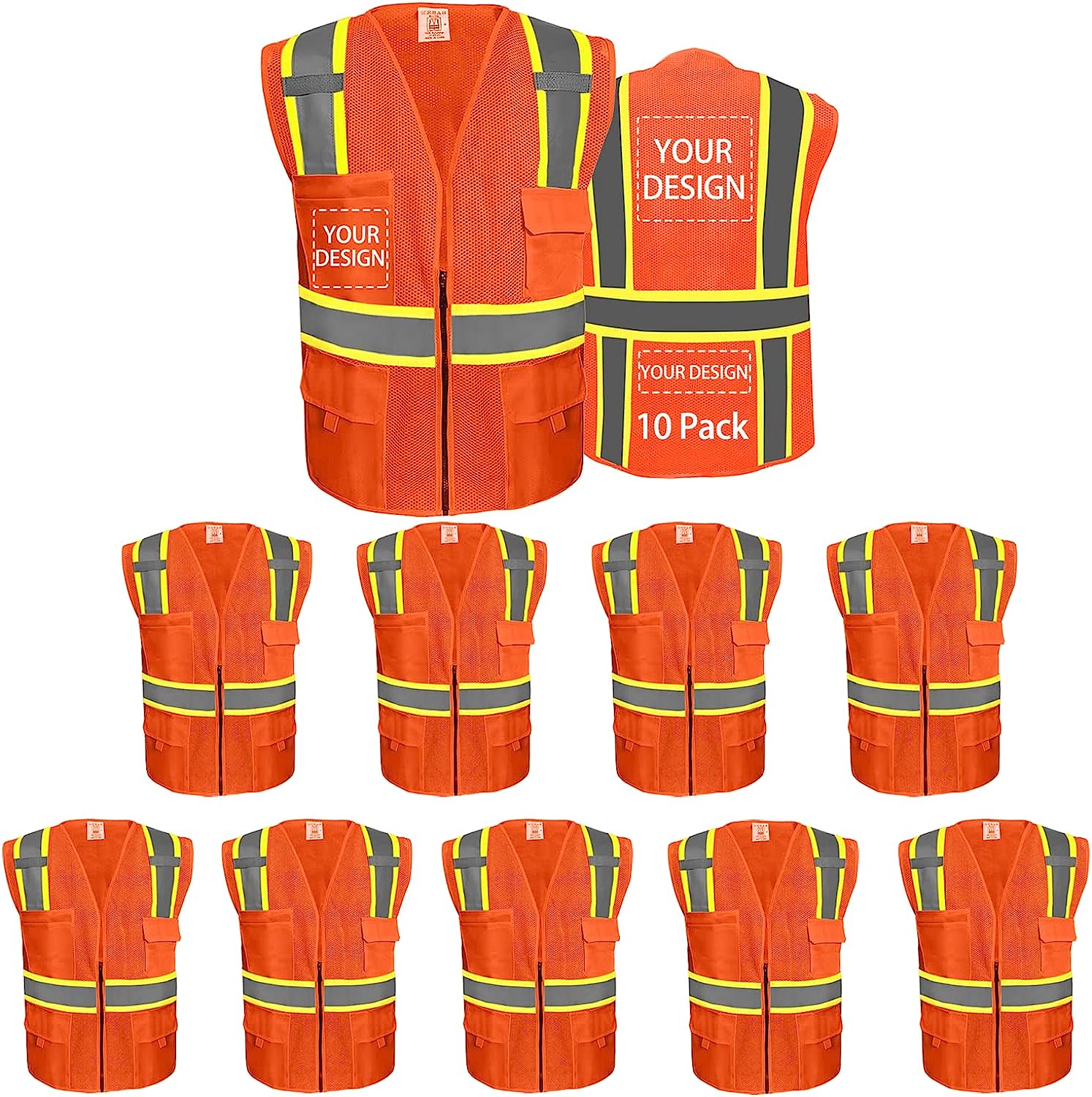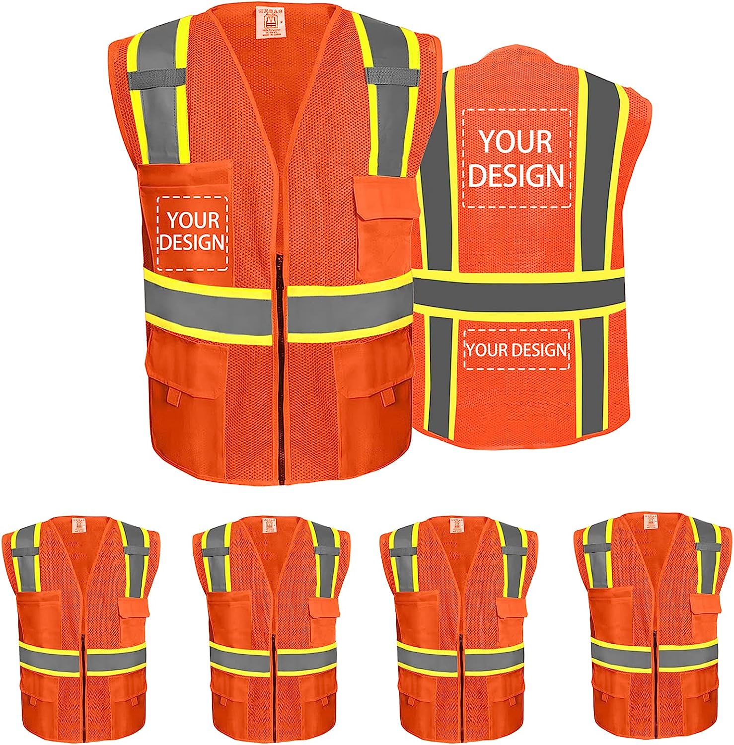 • Add your Design to promote your brand or team identity.There is no MOQ for custom safety vests, 1 piece can also customize your design